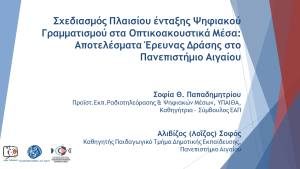 • Σοφία Παπαδημητρίου, Αλιβίζος (Λοΐζος) Σοφός: Σχεδιασμός Πλαισίου ένταξης Ψηφιακού Γραμματισμού στα Οπτικοακουστικά Μέσα: Αποτελέσματα Έρευνας Δράσης στο Πανεπιστήμιο Αιγαίου.